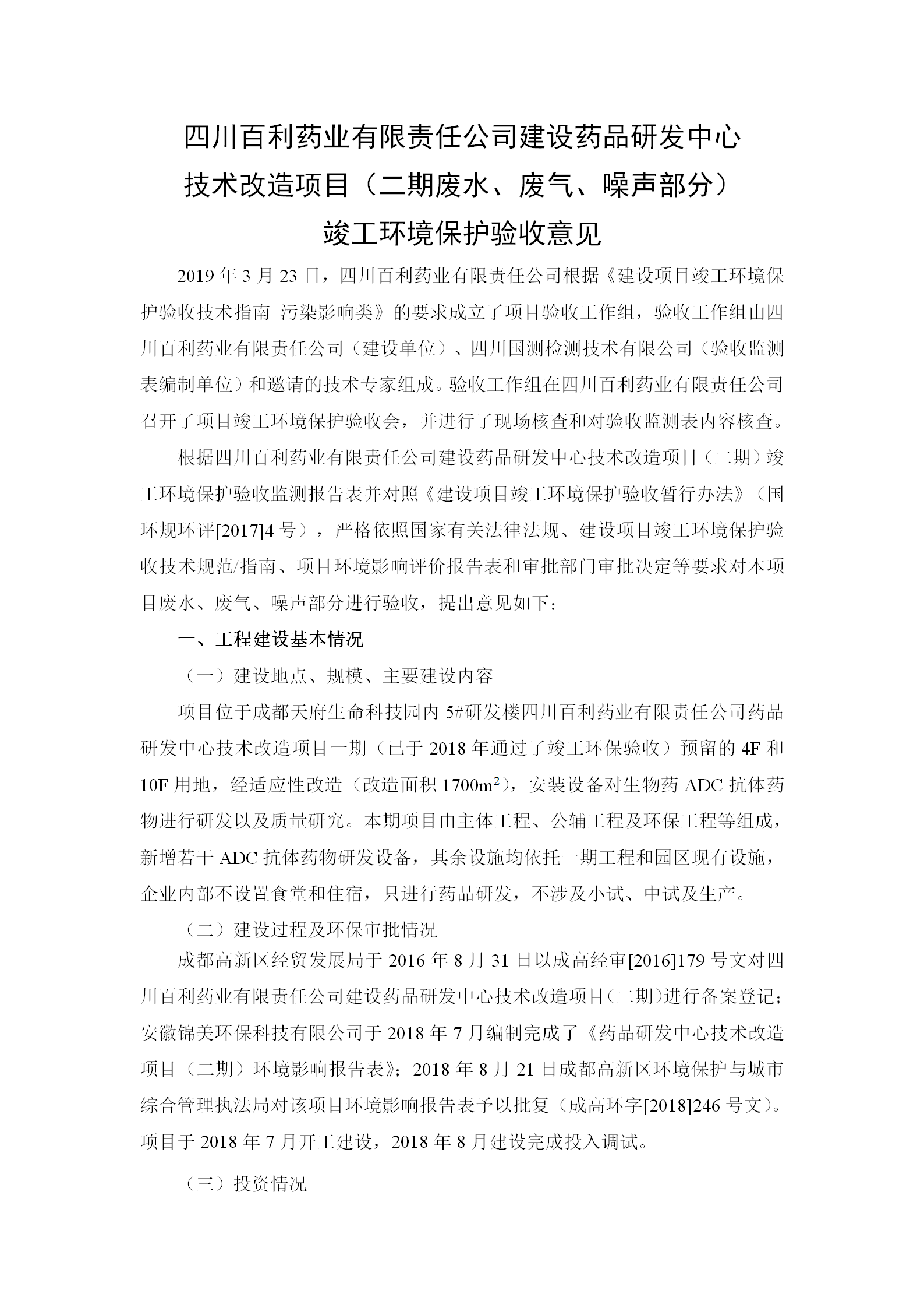 根据《国务院关于建设项目竣工环境保护管理条例的决定》以及环保部《建设项目竣工环境保护验收暂行办法》的公告(国环规环评[2017]4号)现将《四川南昌伟祺智能社区服务有限公司有限责任公司药品研发中心技术改造项目(二期)竣工环保验收监测报告》及验收意见公示如下: